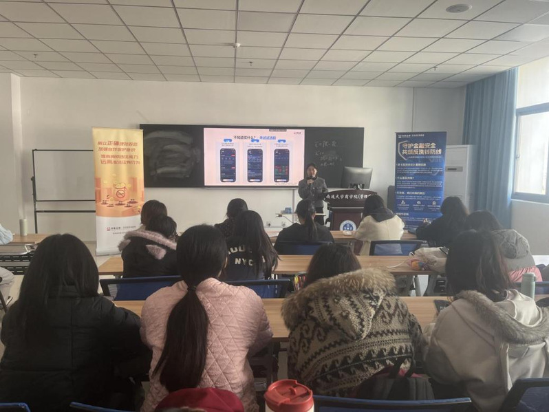 中国银行南通分行丁强副主任以“我向你奔赴而来你就是星辰大海——新时代金融青年的素养与担当”为题,结合二十余年从业经验,分析国家金融政策指引下的行业发展活力、银行组织架构及薪酬体系。他强调,面对行业新形势与全会“建设金融强国”目标,大学生应锤炼“听读写算看说”六大核心能力,更要树立家国情怀,将个人理想融入国家金融事业。丁强的分享为学生提供了针对性职业发展建议,也彰显了金融机构参与高校人才培养、反哺教育的责任担当,是“产学研”合作中企业赋能育人的典范。