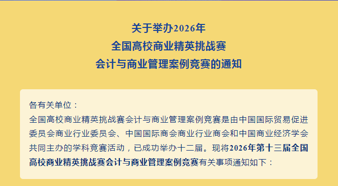 【竞赛通知】关于举办2026年全国高校商业精英挑战赛会计与商业管理案例竞赛的通知