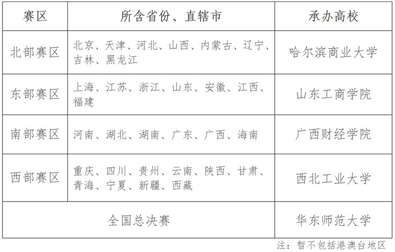 大赛分为四大赛区,各个赛区的划分如下表所示: