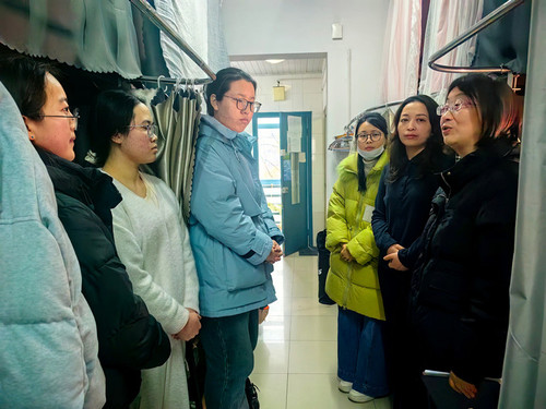 座谈会后,领导一行深入学生宿舍,与同学们亲切交谈,详细询问假期生活、返校适应情况及新学期规划,查看宿舍卫生、用电安全与设施状况,叮嘱同学们严守安全规定、养成良好作息,携手营造文明和谐、积极向上的宿舍氛围。