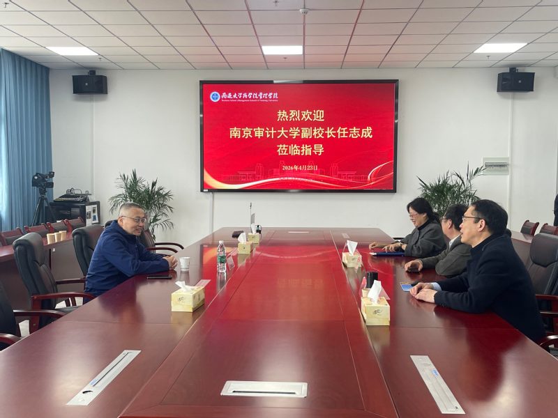 4月23日,南京审计大学党委常委、副校长任志成来校访问。校党委常委、纪委书记、派驻监察专员周振修接待了来宾。